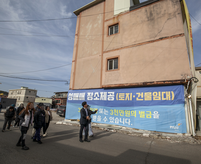 대책위는 또 파주시의 선택적 행정대집행을 지적하며 “집결지 입구에 있는 무허가 건물은 재개발조합장 소유이다. 그럼에도 파주시는 철거는커녕 오히려 성매매 폐쇄 홍보용 현수막으로 가려주고 있다. 이는 파주시가 재개발조합과 모종의 커넥션이 있는 것이 아닌지 의심하게 한다. 애초 재개발구역으로 묶여 있던 집결지를 파주시가 공공시설을 짓기 위해 재개발조합과 어떤 이면 합의를 한 것은 아닌가?”라고 주장했다.
