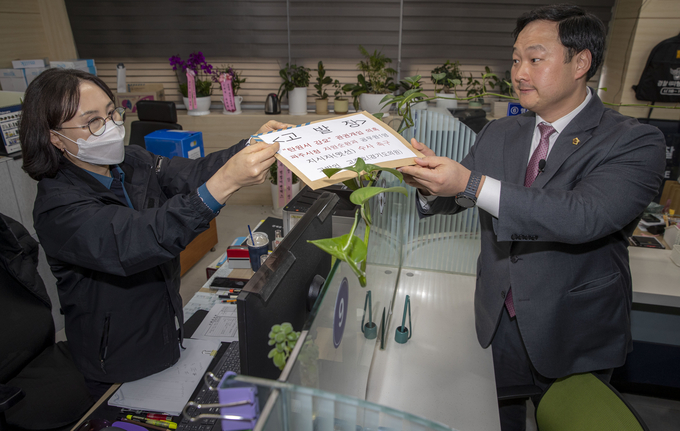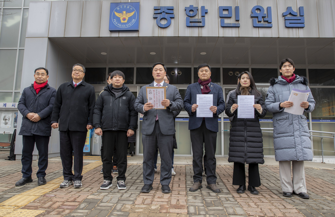 경기도의회 고준호 의원은 4일 파주경찰서 앞에서 기자회견을 열고 파주시 공무원이 국민의힘 파주당협 한길룡 위원장을 정치권에서 몰아내기 위해 위탁업체를 동원 직위해제 탄원서 작성을 압박하는 등 사실상 ‘정치 테러’를 자행했다며 폐기물업체를 관리하는 파주시청 자원순환과 직원과 배후에서 이를 지시한 인물을 공직선거법과 지방공무원법 위반 등의 혐의로 고발했다.