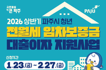 파주시는 청년가구의 주거비 부담을 완화하기 위한 청년 전월세 임차보증금 대출이자 지원사업 신청을 오는 1월 23일부터 2월 27일까지 받는다. ‘청년 전월세 임차보증금 대출이자 지원’은 파주시에 주민등록을 둔 무주택 가구 중 제1금융권에서 전월세 보증금 대출을 받은 19~39세 청년에게 대출 잔액의 2% 이자(연 최대 200만 원)를 지원하는 사업으로, 상·하반기 각 10가구를 선정해 최대 100만 원씩 반기별로 총 2회 지급한다. 신청 대상은 1986년 1월 20일부터 2007년 1월 21일 사이에 출생한 청년으로 하며, ▲공고일 기준 세대원 전원 무주택자 ▲기준 중위소득 180% 이하(1인 가구 기준 461만 6천 원) ▲파주시에 소재한 주택으로 전세 임차보증금 3억 이하(월세의 경우 전월세 전환율 6.7% 이하) 및 전용면적 85㎡ 이하의 주택에 거주해야 한다. 단, 기초생활보장수급자(생계, 의료, 주거급여)와 공공임대주택 거주자, 버팀목 대출 등 주택도시기금을 통해 전세자금을 대출받은 사람, 금융권의 대출 용도가 신용·일반 용도인 경우는 지원 대상에서 제외된다. 지원을 원하는 청년은 경기도 일자리지원사업 통합접수 누리집(apply.jobaba.net