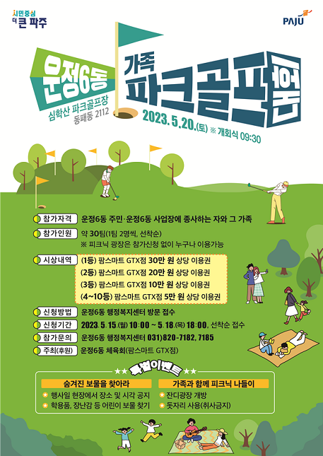 제1회 파주시 운정6동 가족 파크골프대회가 오는 20일 심학산 파크골프장에서 개최된다.