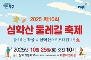 파주시 교하동 주민자치회는 오는 25일 10시, 심학초등학교에서 ‘2025년 제10회 심학산 둘레길 축제’를 개최한다고 밝혔다. ‘깊어가는 가을 속 심학산으로 초대합니다’를 주제로 열리는 이번 행사는 가족이 함께 걷고 즐기는 가을맞이 지역 축제로, 심학산의 아름다운 둘레길을 배경으로 다양한 프로그램이 진행될 예정이다. 이날 축제는 오전 10시 식전 공연을 시작으로, 11시 개막식이 진행된다. 축제 현장에는 체험공간, 먹거리 장터, 농산물 직거래 장터, 풍자화(캐리커처) 무료 체험(선착순 30명) 등 풍성한 볼거리와 즐길 거리가 마련된다. 또한 경품 추첨과 노래자랑 등 참여형 행사도 진행되며, 75인치 발광다이오드(LED) 텔레비전 등 푸짐한 경품이 준비돼 있다. 특히 올해 축제에는 파주시 홍보대사이자 초대가수 김대훈이 출연해 신나는 무대를 선보일 예정이다. 박용호 교하동 주민자치회장은 “올해로 10회를 맞은 심학산 둘레길 축제는 주민이 주도하는 교하동의 대표 축제로 자리 잡았다”라며 “마을회관에서 행사장까지 차량 지원을 제공하는 등 많은 주민들이 불편 없이 참여할 수 있도록 철저히 준비하고 있다”라고 밝혔다.