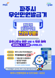 파주시는 시민들의 비용 부담을 줄이고 생활 편의를 높이기 위해 2026년 1월 1일부터 관내 무인민원발급기에서 발급되는 제증명 수수료를 전면 무료화한다고 밝혔다. 그동안 무인민원발급기 수수료는 국민기초생활수급자, 국가유공자 등 일부 대상자에게만 감면·면제 혜택이 적용돼왔으나, 이번 전면 무료화 조치로 파주시민 누구나 동일하게 무료 혜택을 받을 수 있게 됐다. 다만, 부동산 등기부등본은 무료화 대상에서 제외된다. 무인민원발급기는 지문 인증 또는 모바일 신분증 인증을 통해 간편하게 이용할 수 있으며, 파주시는 현재 40개소에서 총 45대의 무인민원발급기를 운영 중이다. 이 중 27개소는 연중무휴 24시간 이용 가능해, 야간이나 휴일에도 시민들이 편리하게 민원서류를 발급받을 수 있다. 파주시 관계자는 “이번 무인민원발급기 수수료 전면 무료화는 금액으로는 크지 않지만, 시민들이 일상에서 자주 체감할 수 있는 ‘생활 속 작은 혜택’”이라며 “앞으로도 시민의 일상을 세심하게 살피며 생활밀착형 행정서비스를 계속 추진해 나가겠다”라고 밝혔다. 한편, 무인민원발급기의 설치 위치 및 운영시간에 대한 자세한 사항은 파주시청 누리집 및 정부24에서 확인할 수 있다.